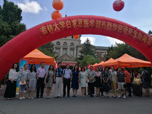 在新民校区校部机关楼门前迎接2016级研究生新生的到来,学院的师生们已经准备数日,大家饱含着对新生的期待和极大的热情投入到迎新工作。