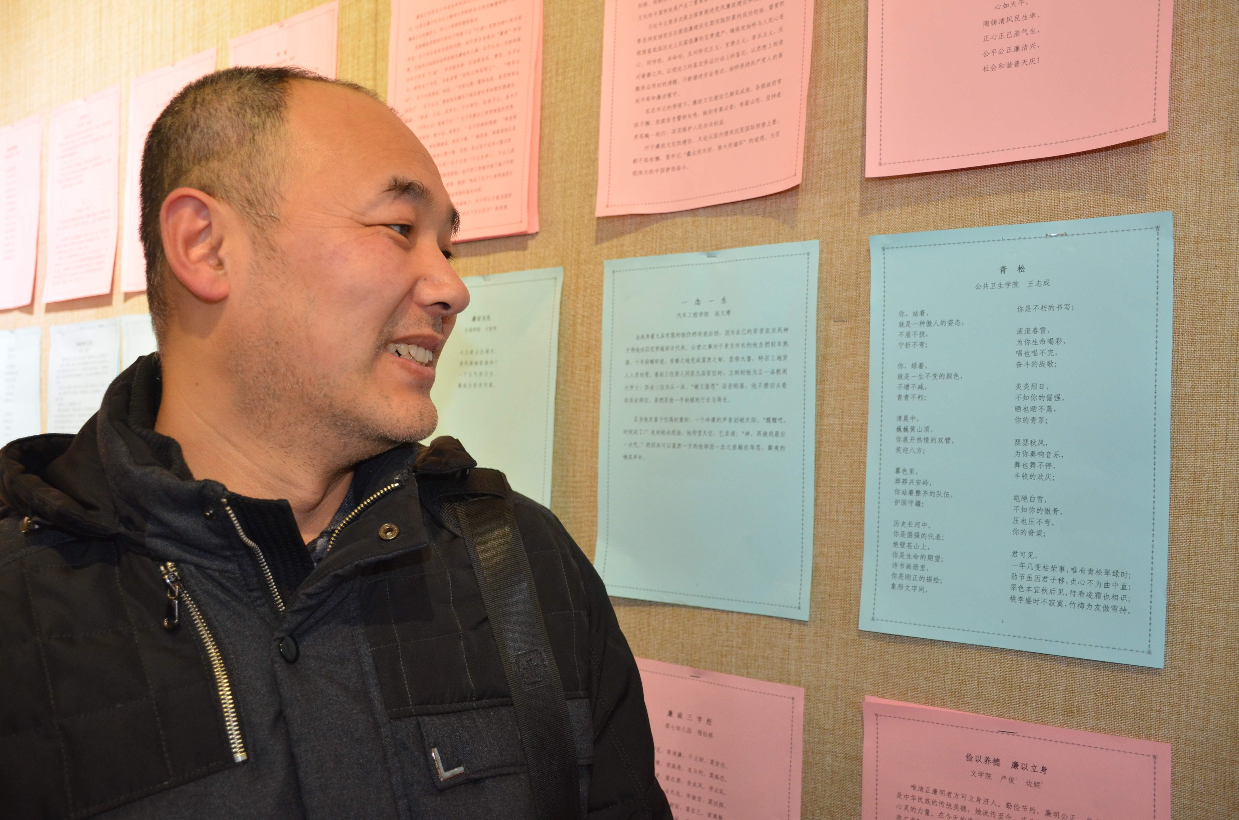 展厅内共展出全校师生员工精心创作的廉政书法、绘画、摄影、艺术设计、文学创作等作品300余件。我院教师王志成老师的现代诗“青松”也在展览之中。教工们在被高水平艺术作品吸引的同时也交流着对于廉政作品、廉政建设的看法和体会。此次展出作品内容生动、主题鲜明、寓意深刻、融思想性和艺术性于一体,充分体现了廉政文化和艺术形式的高度结合,表现了反腐倡廉的新气象、新风尚,讽刺鞭挞了社会腐败现象,同时也反映了学校党风廉政建设的丰硕成果和师生员工昂扬向上的精神风貌。