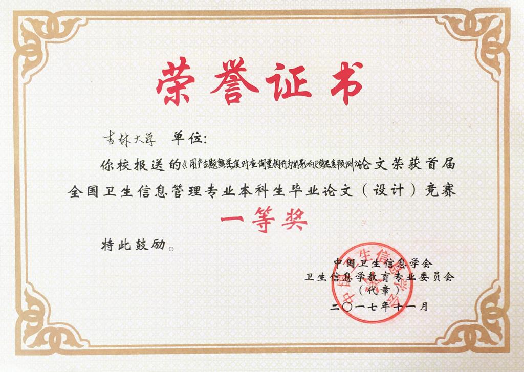 、华中科技大学、中南大学、中国医科大学、山西医科大学、重庆医科大学、广西医科大学、广东医科大学、南通大学、河北北方学院、徐州医学院、滨州医学院、济宁医学院、新乡医学院、湖北医药学院、成都医学院等院校共报送参赛论文作品69篇。经本次竞赛专家委员会匿名评审,共有31篇论文获奖,其中一等奖论文6篇、二等论文10篇、三等奖论文15篇。根据竞赛规则,我院从2017届信息管理与信息系统(医药信息管理)专业本科毕业论文中选送参赛论文9篇,其中《用户主题熟悉度对查询重构行为的影响及熟悉度预测》(刘强,指导教师:孙丽副教授)获本次竞赛一等奖;《基于专利分析的生物医药企业技术威胁识别与预测》(李芳芳,指导教师:王伟教授)、《医学文献自动分类算法的比较研究》(张雅鑫,指导教师:张云秋教授)、《基于文献数据的糖尿病并发症关联基因对比研究》(金姗,指导教师:牟冬梅教授)分别获得本次竞赛三等奖,获奖论文数量位列参赛各院校首位,比较客观地反映了我院本科教学取得的成果。
